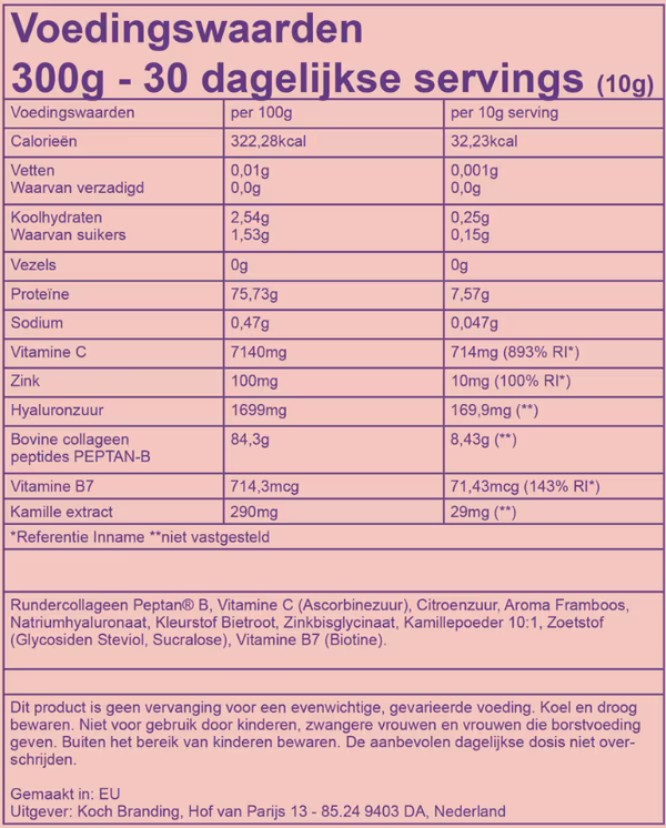 Om ervoor te zorgen dat dit wel gebeurd zijn extra vitamines en voedingstoffen nodig: Vitamine C, Zink & Hyaluronzuur.
