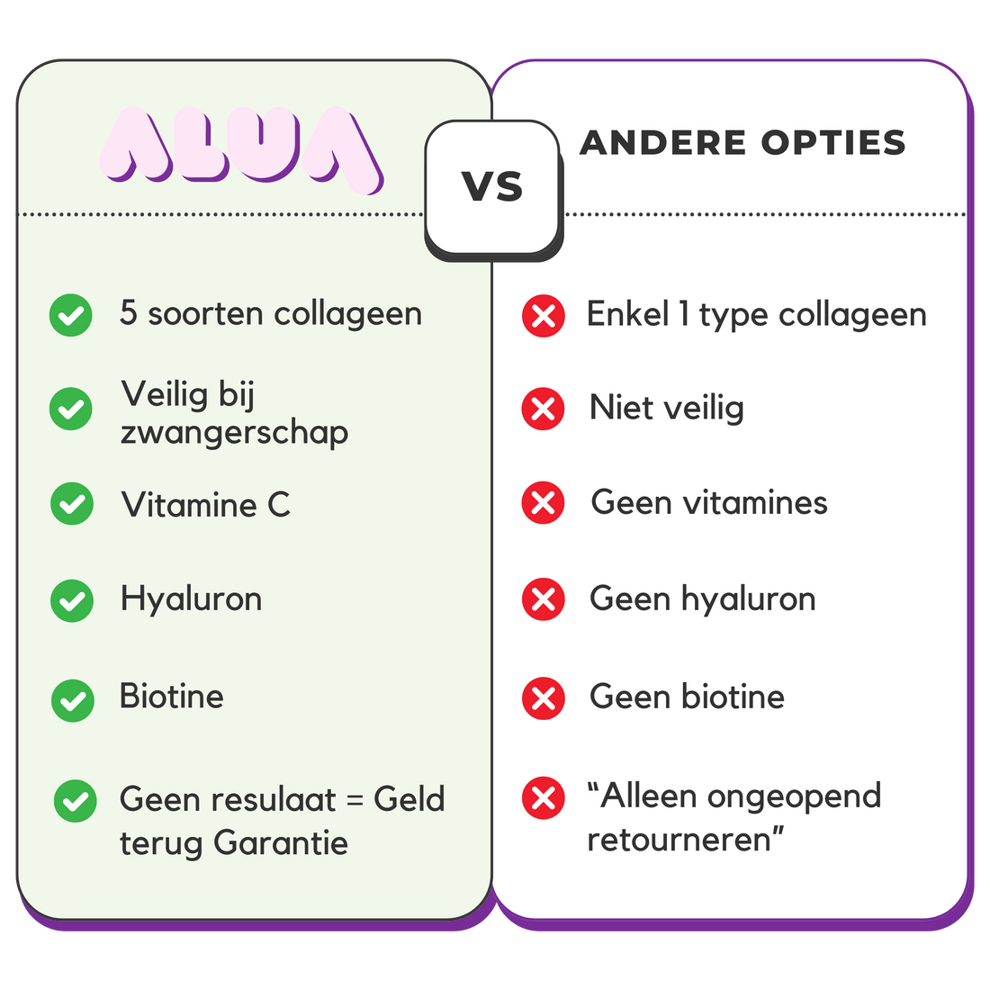 Let op: Alua Collageen moet constant gebruikt blijven worden om het resultaat te behouden.